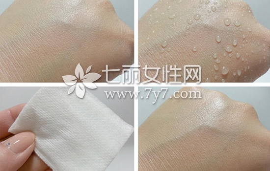 用喷水壶喷水后再用化妆棉擦拭,擦不出一点粉底液,说明粉底液防水效果不错,不容易花妆。
