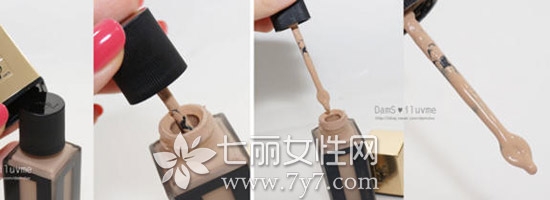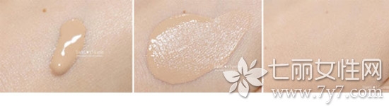 质地的话和这款产品的名字相符,是墨水的那种质地,比较轻柔,流动性较好,涂在手上会有水水的那种感觉。推开后很快就能和肌肤融合,干的比较快,上妆时一定要迅速。