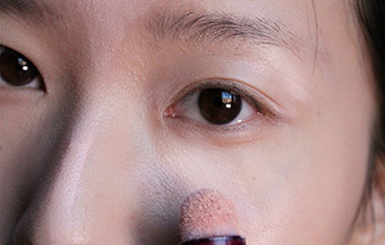 第一步:在基本的水乳保湿后,我们先涂抹妆前乳。取米粒大小均匀涂抹在T区和脸颊毛孔粗大部位,用海绵按压。妆前乳的作用是填补凹凸不平的粗大毛孔,使后续底妆平滑服帖。