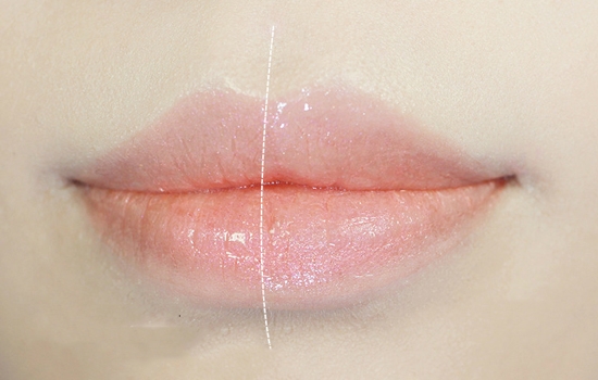 首先我们涂抹普通润泽型唇膏,再用手沾取口红雨衣直接涂抹在嘴唇上,左边为没有涂抹口红雨衣的,右半边则是涂抹过的。从上嘴上看,擦完之后基本没有什么变化。