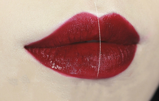 接着我们来试一下重色唇膏,这里使用的是MAC的diva,左边是擦过口红雨衣的,有点擦多,显得有点有点亮泽反光,于是雾面唇膏不太适合擦口红雨衣,会变得有一点光泽的哦!