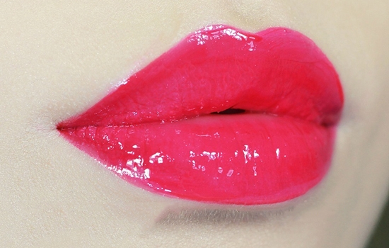 最后用唇釉试一下,这里涂了厚厚两层的迪奥液体唇膏,由于唇釉擦太厚,导致用手涂抹口红雨衣会稍有不均。