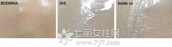把3个产品分别涂抹于手背后,卸妆水就是水润的液体;卸妆油就是很柔和的油质地;卸妆膏刚涂在手背上后感觉很柔软,刚到手背上就能自然化开,很舒服的感觉。