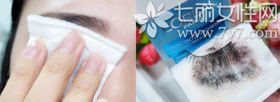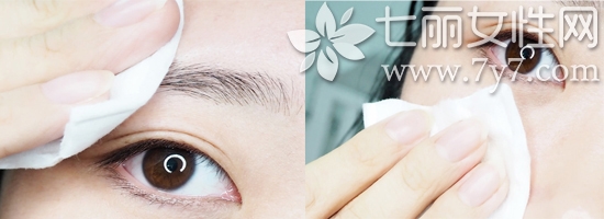 眉毛就更简单啦,重新拿一个化妆棉沾取卸妆液,轻轻擦拭就可以卸的很干净,我们亏用化妆棉背面顺便擦掉脸上的粉底,简单快速又省事。