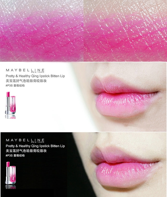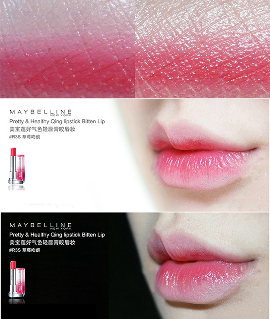 美宝莲咬唇唇膏试色:草莓吻痕