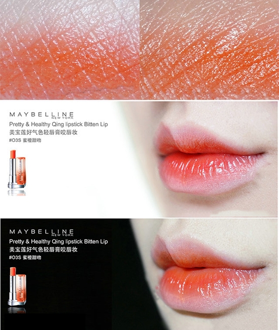 美宝莲咬唇唇膏试色:蜜橙甜吻
