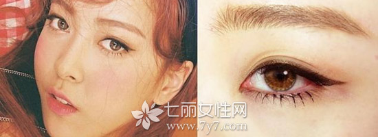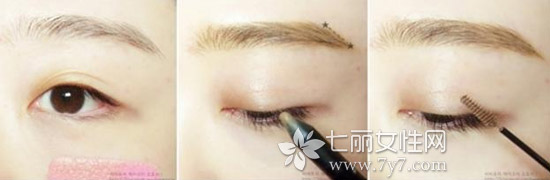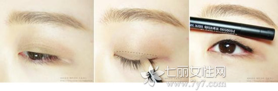 STEP4:把摩卡棕色眼影涂抹在双眼皮褶皱处,画上黑色内眼线。