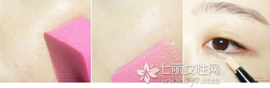 STEP1:用适合自己的粉底上好底妆,对眼周等进行局部遮瑕。