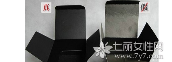 假货:包装盒子内里不是纯黑色,表面发金发乌,做工不够仔细,纸盒上面有反光性。