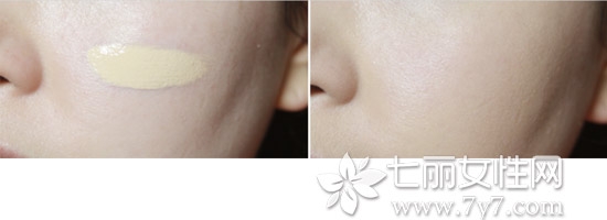 结果:右边肌肤亮白,颜色得到了比较好的遮盖,不过可以看出纹理还是比较明显的。