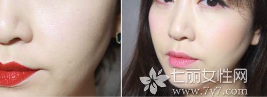 结果:脸部上完妆后整体非常白皙,肤色非常均匀,丝滑质地也有,妆感也有些明显。底妆可以配合更加亲肤的隔离,让粉底更加自然。