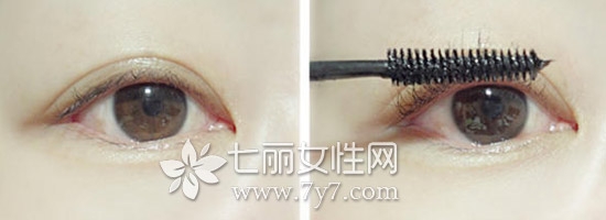 再用大刷头刷遍上睫毛,然后用小刷仔细刷下睫毛。