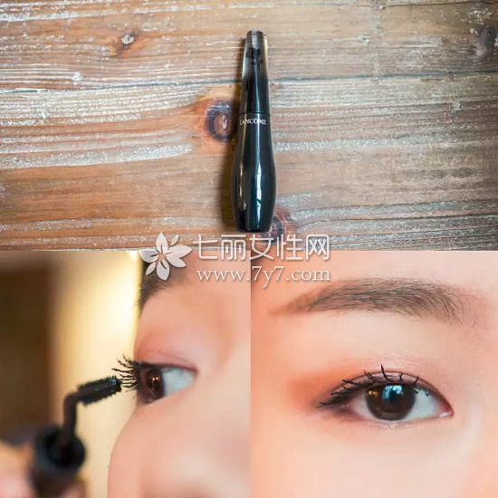 眼妆到这里也就完成大半了,接下来,画睫毛。用的是baby同款的兰蔻天鹅颈睫毛膏-01色号。被“掰弯”的设计更容易画到每一根睫毛,睫毛稀少星人立马有了睫毛。