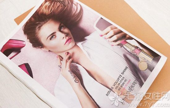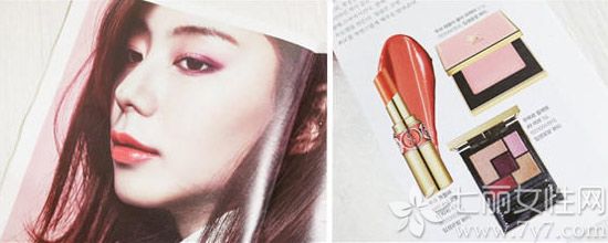 右图用的是YSL七号眼影盘和YSL浓密丰满粉色睫毛膏和YSL迷魅银管护唇油 #15。
