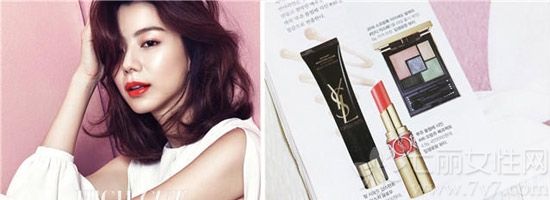 Hightcut在最新一期的画报里展示了裴勇俊爱妻朴秀珍的YSL妆容,唇膏用的就是新出的YSL迷魅唇漾唇膏。