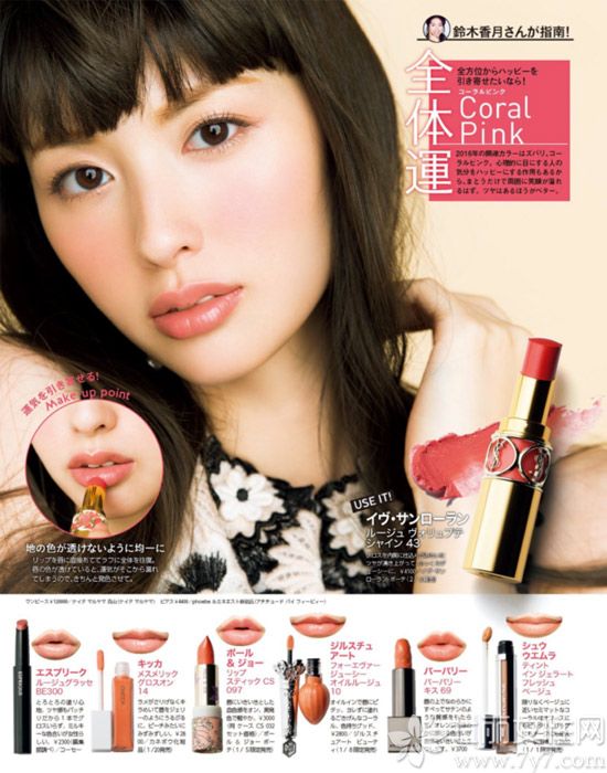 想要提升整体运,推荐的唇色是有光泽的Coral Pink(珊瑚粉),看起来特别精致,会让心情大好。