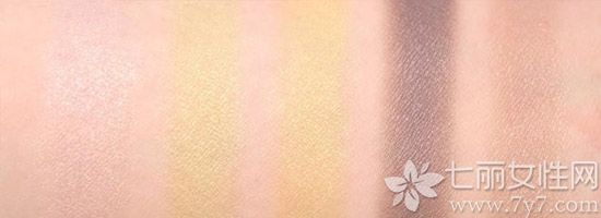左起:粉白—翠绿—嫩黄—灰紫—浅棕,粉质细腻,显色比本体略偏淡些,贴合性好,不浮粉。
