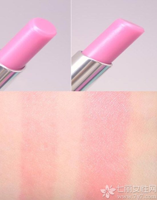 相对原有的嫩粉色和橘色,这款变色唇膏更加偏粉紫,不过依旧是涂抹过后会逐渐变深。