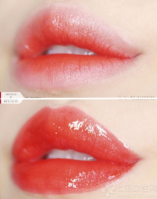 先看一号色火红色的显色效果吧,色泽度比较鲜亮的红色,没有泛有蓝色光,属于暖色调红色。本来以为护唇油会很油腻,实际涂抹时一点儿都不油腻。