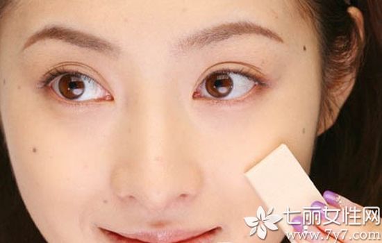 第一步:清洁眼周肌肤,化妆水、眼霜在眼部轻轻按摩依次给眼周肌肤进行护理。肤色确实需要使用粉底液,可以在眼部轻轻拍一点气垫粉底。