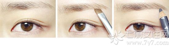 STEP3:用棕色眉笔勾勒出细致的眉形,画一字眉即可。