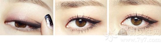 STEP13:用眼线刷蘸取黑色眼线膏画上外眼线,从眼头画至眼尾,要越来约粗。