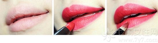 STEP23:给全唇涂上大红色的唇膏,大致涂一下即可。