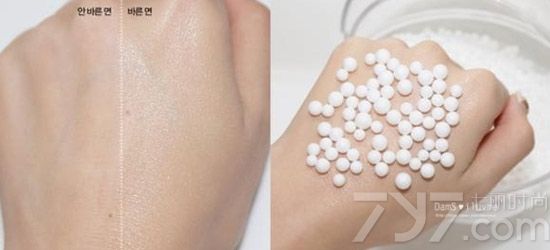 和没涂的左半边手背比更加明显,不过因为滋润度很高,所以对测试用的泡沫球依附性很高。
