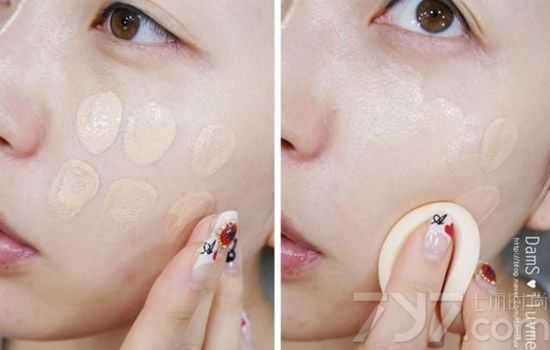 也可以先将粉底液涂在脸上,再用粉扑轻拍涂开使用。