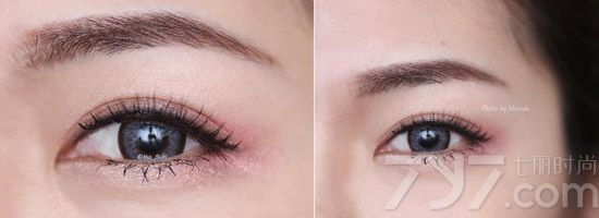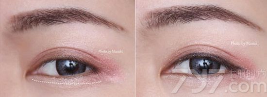 Step7:最后刷上睫毛膏,戴上短款浓密的假睫毛就可以了,整个眼妆看起来非常的自然粉嫩。