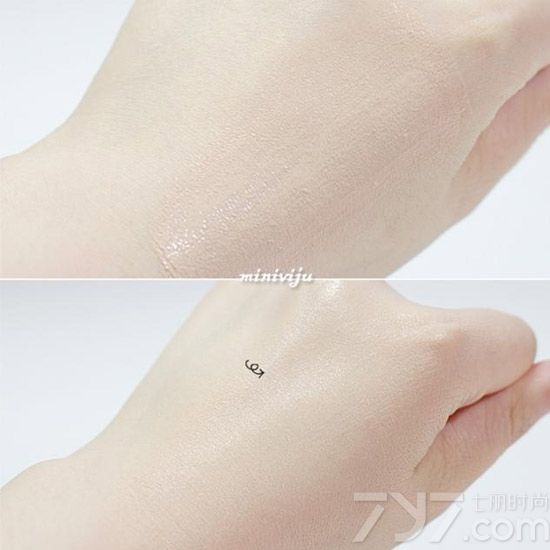 手背试色 能轻易抹开,手背的毛孔都能够遮盖,但是还是有一定的妆容感。