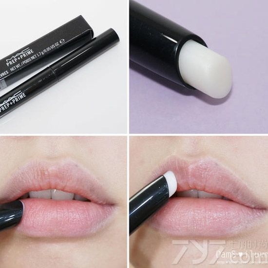 涂抹液体唇膏之前,先用M.A.C Prep Prime妆前打底润唇膏涂抹嘴唇,为嘴唇做打底。