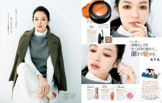 妆容重点:橘色的眼影,上下相应涂抹,不同以往的女人味,以清洁感召唤魅力。
