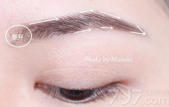 首先画出眉干部分,从眉头一条倾斜的直线一直垂画到眉尾,然后下侧的眉干也是从眉头开始连接到眉尾地方,最后用眉粉来回描画,填充好眉形,在眉头圆圈的部分可以用手指或者是棉签轻轻晕开,这样眉形就看起来非常的自然。