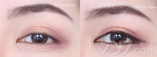 Step4:再用一把干净的晕染刷,在眼窝上来回晕扫,让眼影过渡自然柔和。