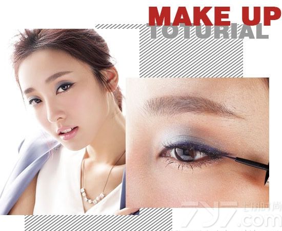 用哑光的蓝紫色眼影+眼线液可以画出知性OL妆的风格: