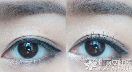 STEP4:夹睫毛后刷睫毛膏,自然感的就好,眼头可以用satin质感的白色眼影提亮,一款用欧莱雅眼影盘打造的眼妆就完成啦。