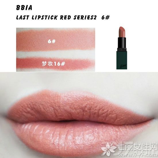 6#是一只比较发白的裸橘色,小编这里与梦妆的热门色号16#作对比,梦妆会偏红一点,bbia家浅色口红质地都会很干,所以在涂口红前要做好打底工作。这个颜色比较挑肤色,涂不好会比较病态。
