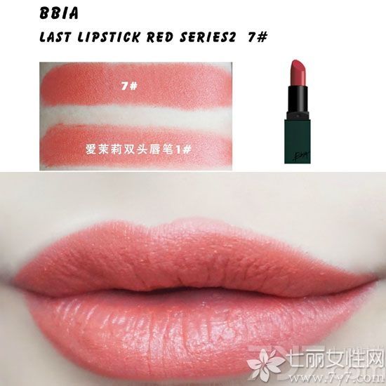 7号色比6号色橘一些,颜色很元气,跟手头上的爱茉莉双头唇笔1#颜色相似,会相对鲜艳点,小编推荐在春季使用。厚涂特别美,也很显白,打完底也很顺滑好涂。