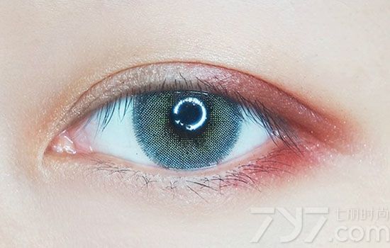 第二步:用带闪红色晕染上下眼尾,再用哑光红色加深上眼味,面积不用太大,刷在睁眼就能看到的范围就足够。