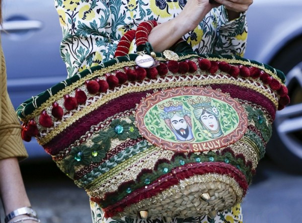 何穗最新街拍,灰色毛衣+墨绿色光泽感半裙,文艺慵懒,少女感十足。马海毛毛衣来自H&M,手提包和粉色毛拖鞋均来自Gucci,半裙来自Tibi 2016