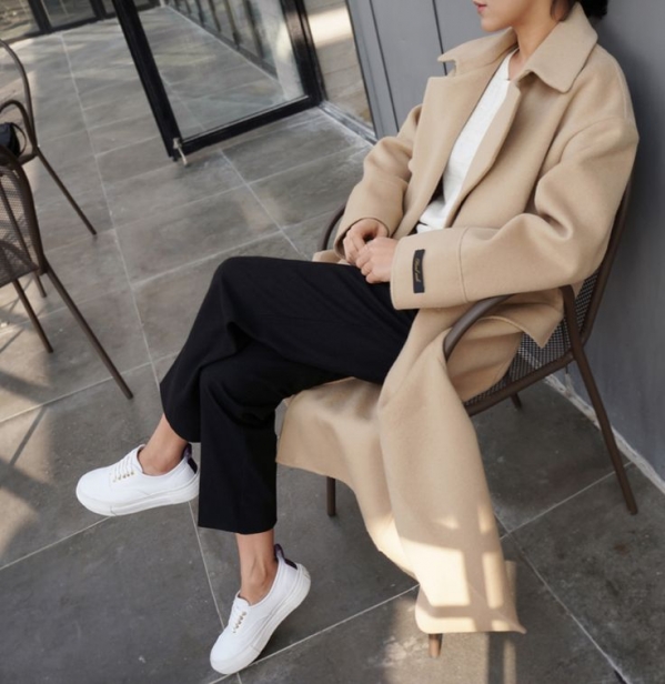 ⑦驼色呢子大衣+运动鞋---运动混搭style