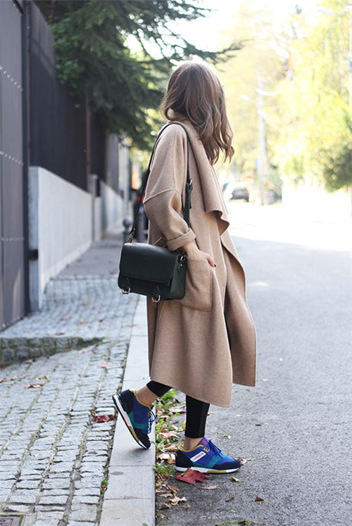 大衣搭配运动鞋已经不是什么新鲜事了,驼色大衣一样实用哦~