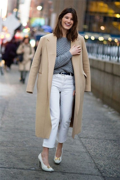 驼色大衣搭配白色给人干净简约感,白色毛衣根据自己肤色选择冷白色还是奶白色哦~