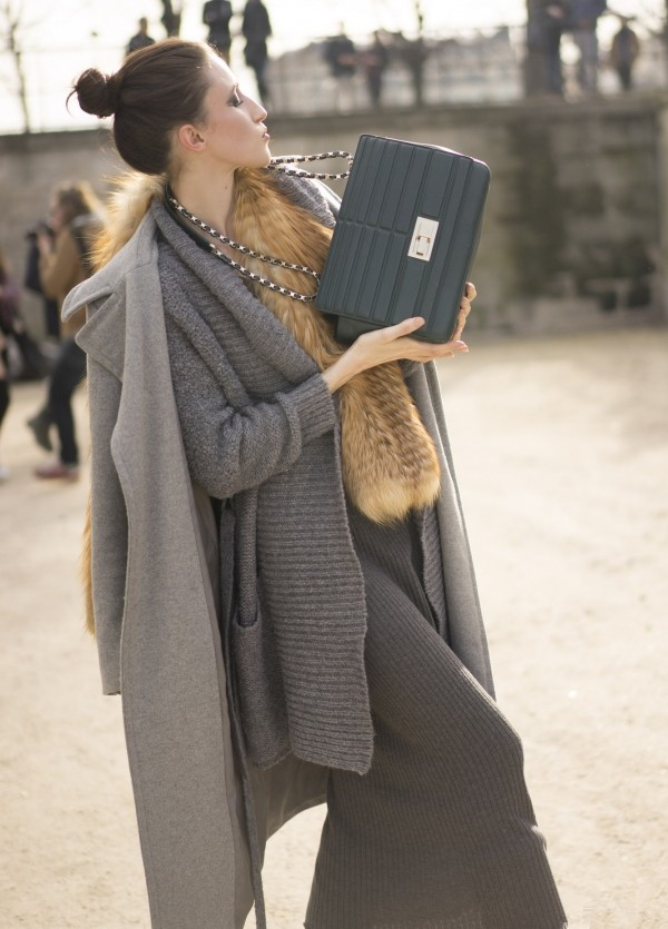 灰色的大衣和灰色的开衫加上皮草围巾的点缀,即使是这么简单的颜色搭配在一起也充满高级质感。
