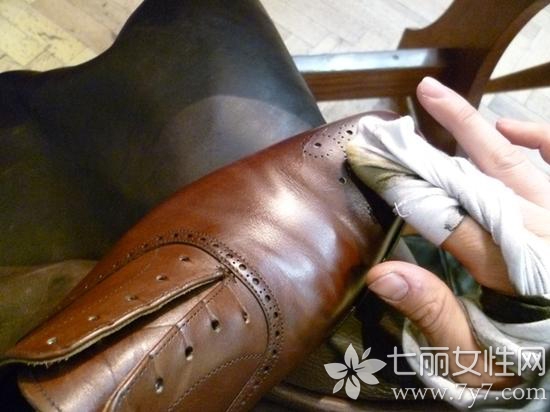 3、待皮鞋上的改色剂干燥后,再在皮鞋表面上蜡,打蜡,抛光,起到相应的护理固色作用。 注意:改色其实是在原色的基础上加深或修色,而不是把原本黑色的真皮改成浅色的。改色出来的皮鞋它的耐磨,耐曲折,固色性会比原来略低,所以尽量谨慎应用;