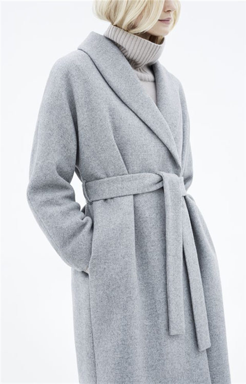 灰色系带大衣搭配图片