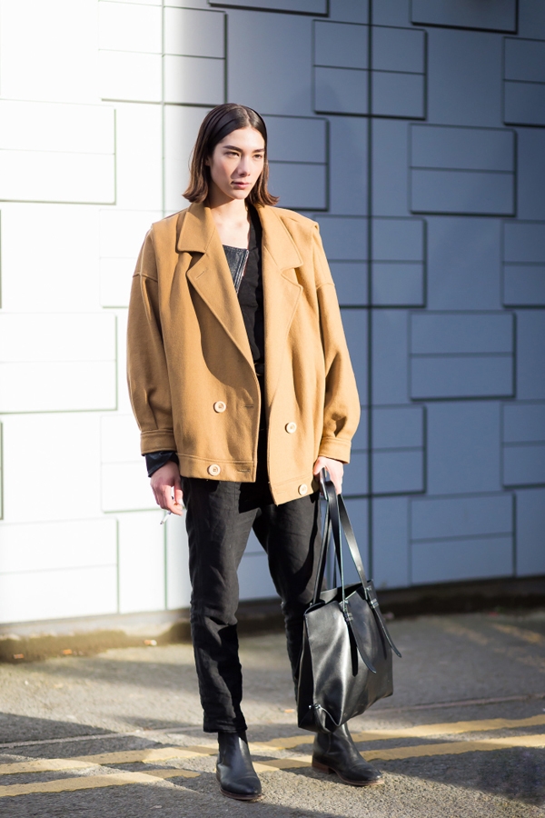 驼色oversize的外套想要把握不出错,黑色内搭就是绝佳的选择。