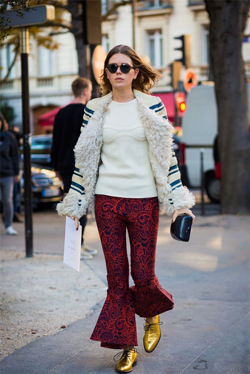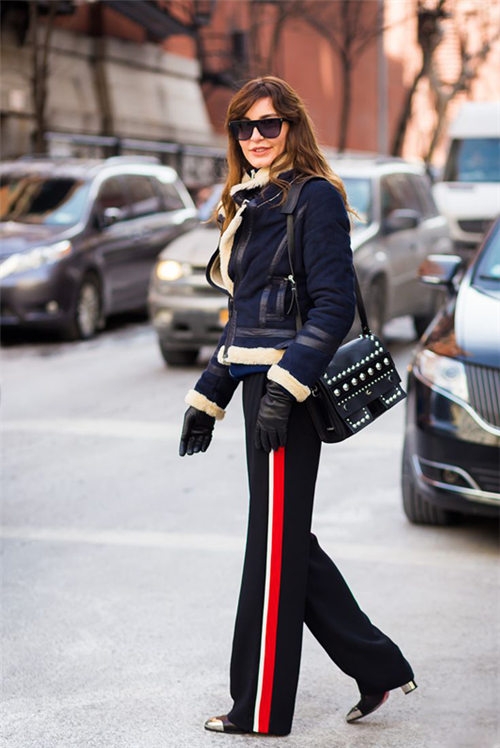 冬季羊羔毛外套搭配hot的阔腿裤也是很有个性的。