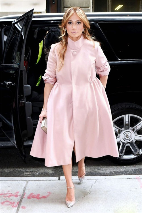 拥有魔鬼身材的Jennifer Lopez性感路线的女星也有公主梦啊~不过臀部突出的她并不适合摺摆的轮廓。不过就搭配来看实在高阶甜美。一字带的blingbling的尖头鞋极具女人味。